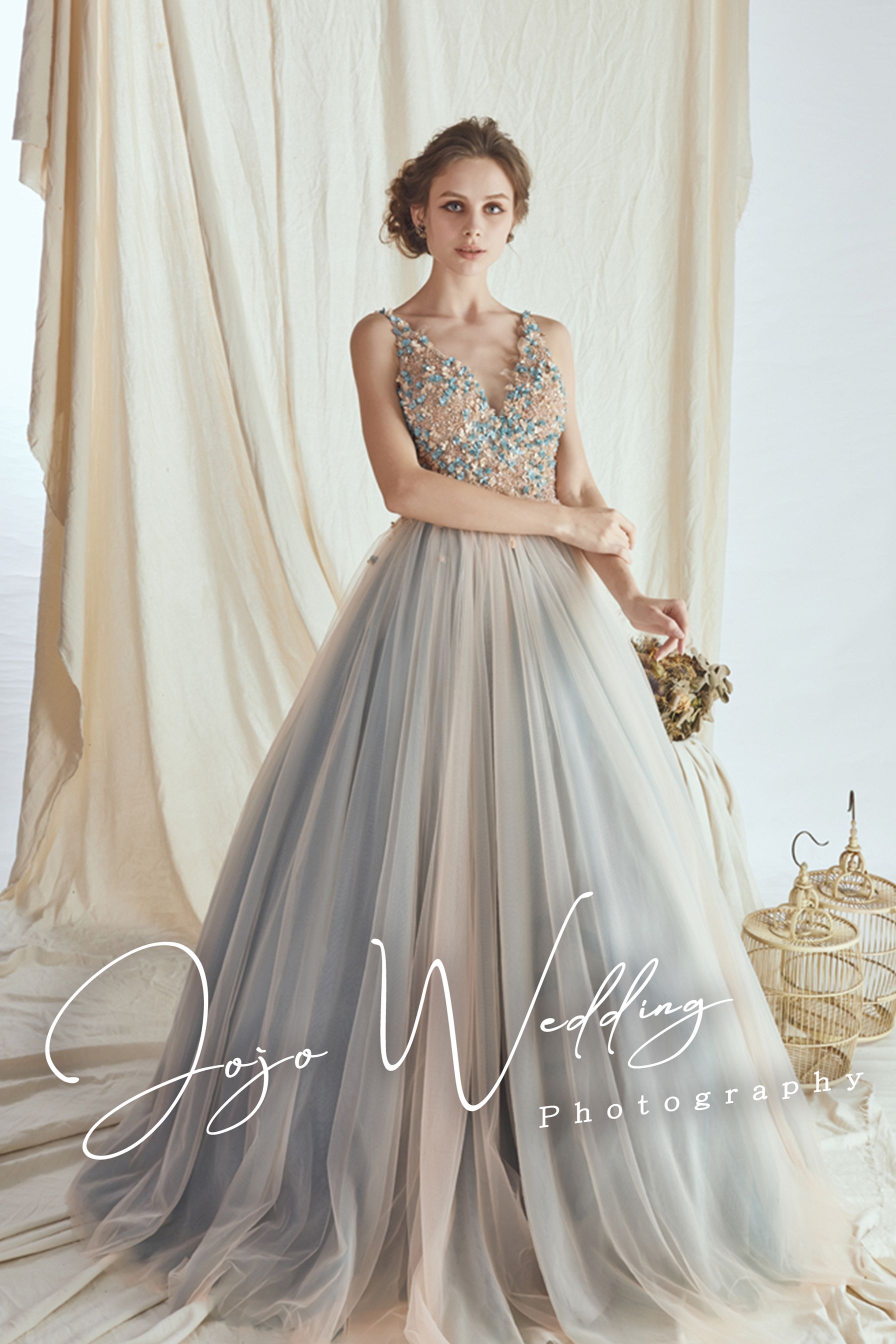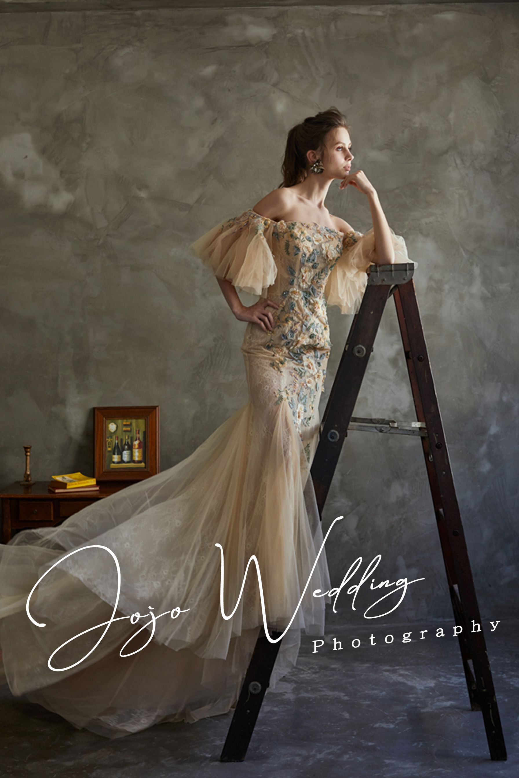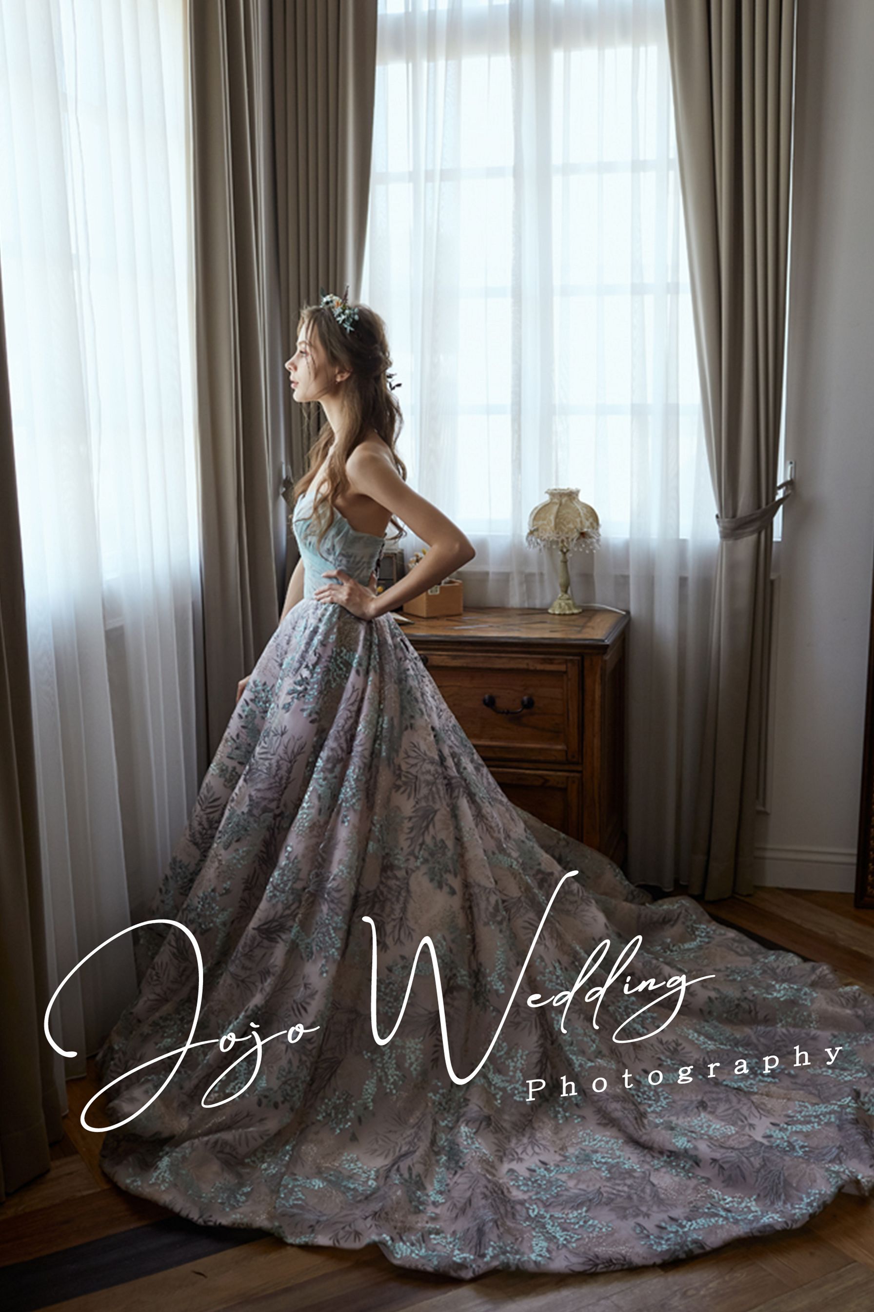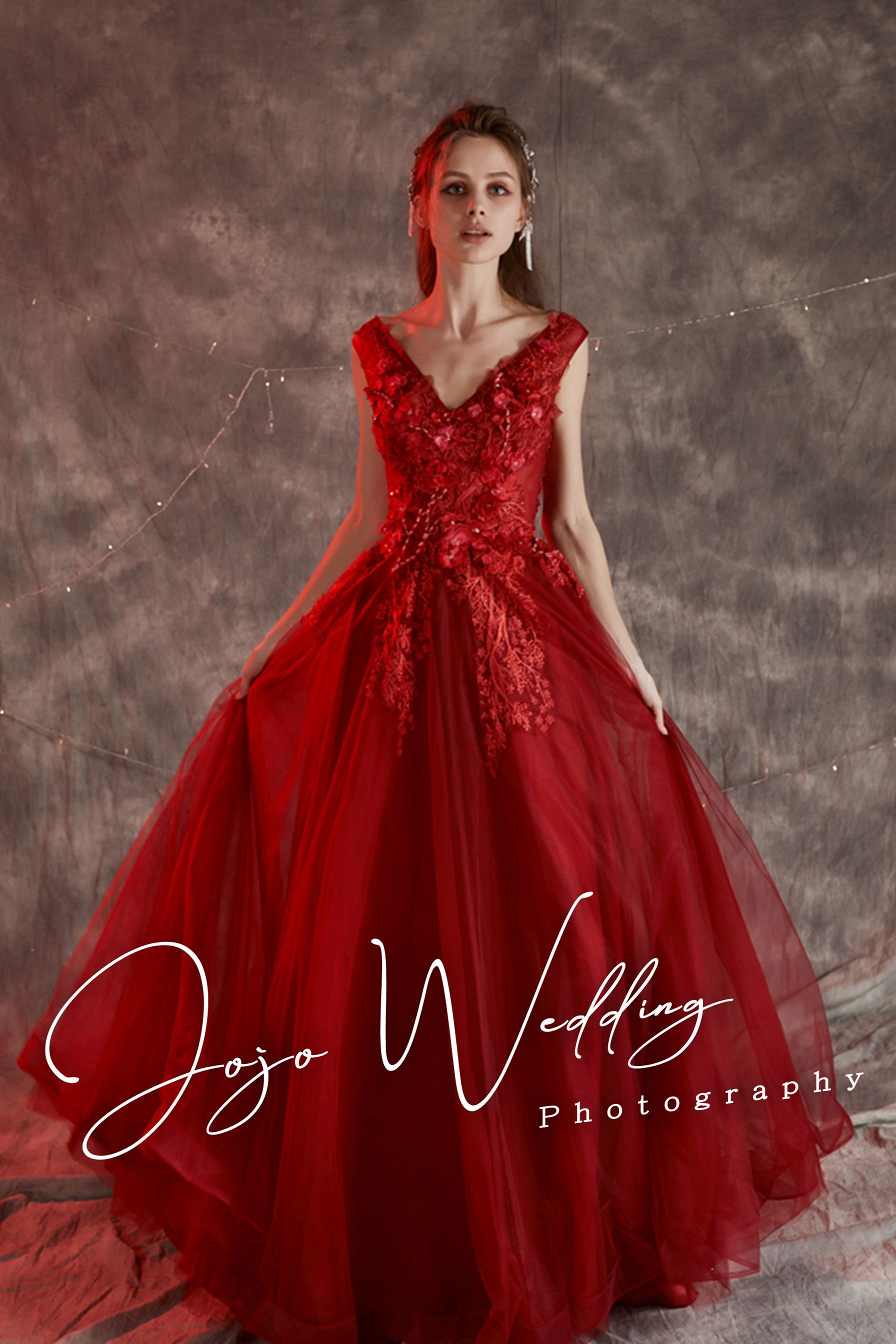JOJO婚紗位於台中熱鬧的一中商圈周圍,在創立時就以區隔化市場策略進入婚紗市場經營,成立專屬的婚紗禮服設計部門及工廠,與國際知名品牌同步以法國及義大利的頂級布料,以高級訂做禮服的概念設計出流行時尚趨勢的婚紗及禮服,以平價、專業時尚的客製化婚紗攝影為定位,擁有一群極富創意與熱情的專業團隊,為每一對懷著完美動人婚紗憧憬的新人們,拍攝與紀錄最完美的每一瞬間!