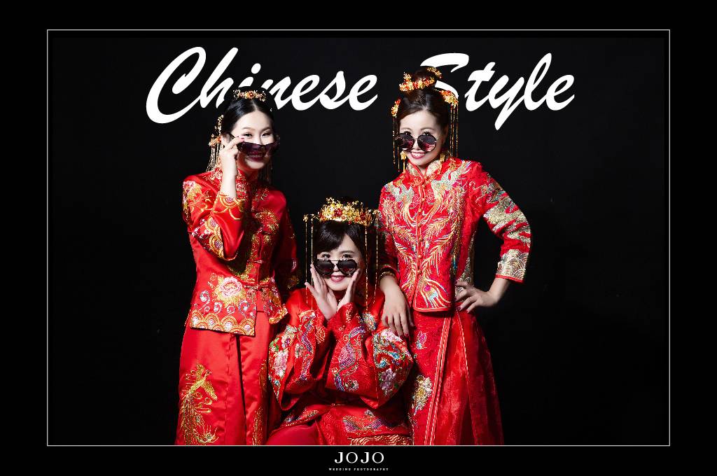是不是發現最近許多明星藝人結婚,都選擇穿著中式禮服,當然也可以跟閨蜜一起穿!大紅色的龍鳳褂襯出女性的膚如凝脂,搭配JOJO準備的多組中式禮服配件、手工飾品,彷彿和閨蜜一起上演穿越劇~