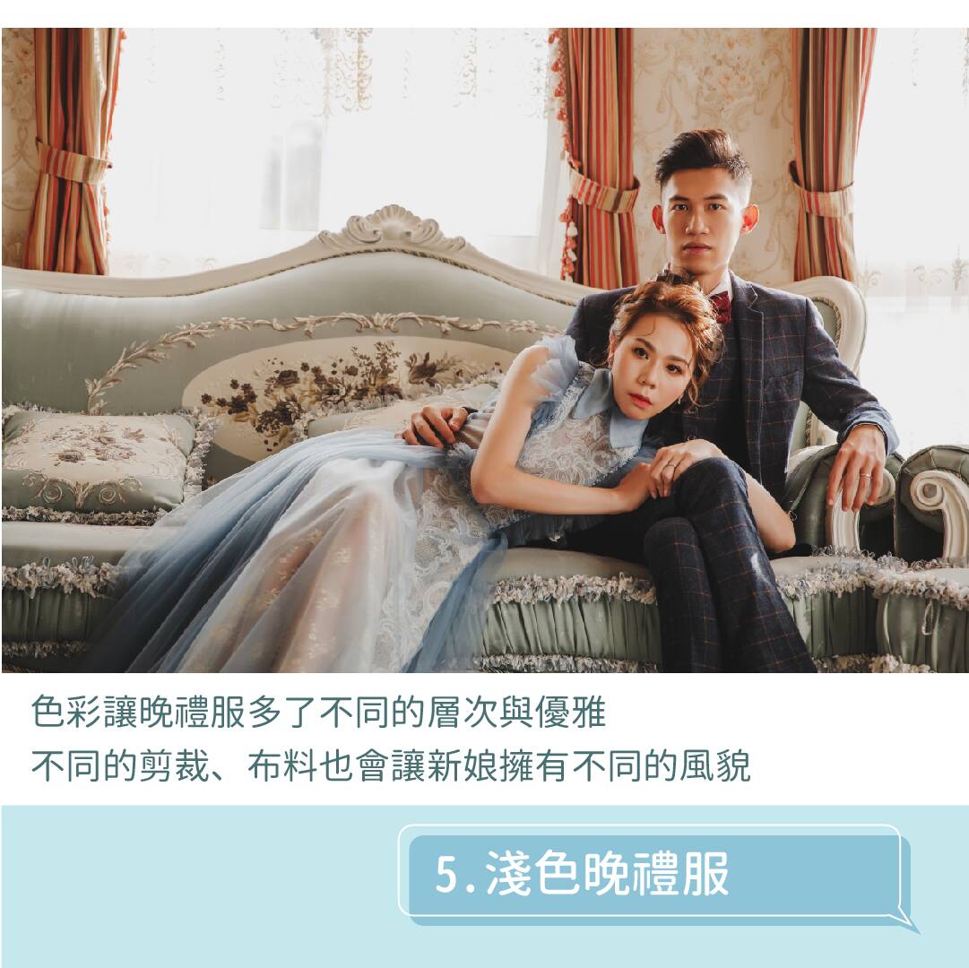 有些女孩們會覺得淺色晚禮服跟白紗會比較相似,