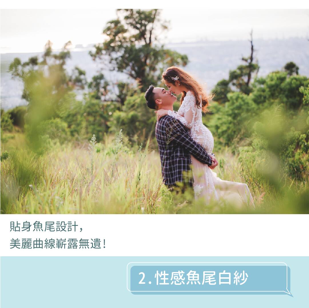 貼身的魚尾裸紗也是熱門選手,