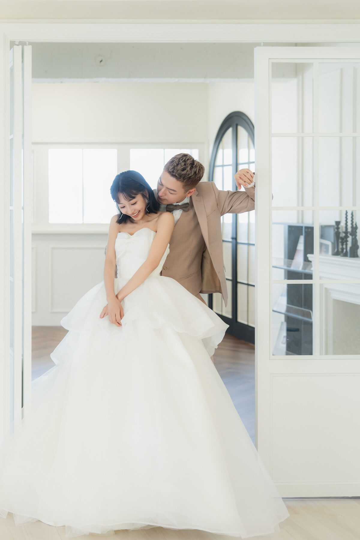韓系極簡風的魅力,在於乾淨柔和的光影與不經雕琢的自然氛圍,純白與奶油白的色調像溫柔的濾鏡,把日常拉成更美的一刻,笑容、眼神、微微靠近的姿態,都會在簡約背景裡更清晰動人。