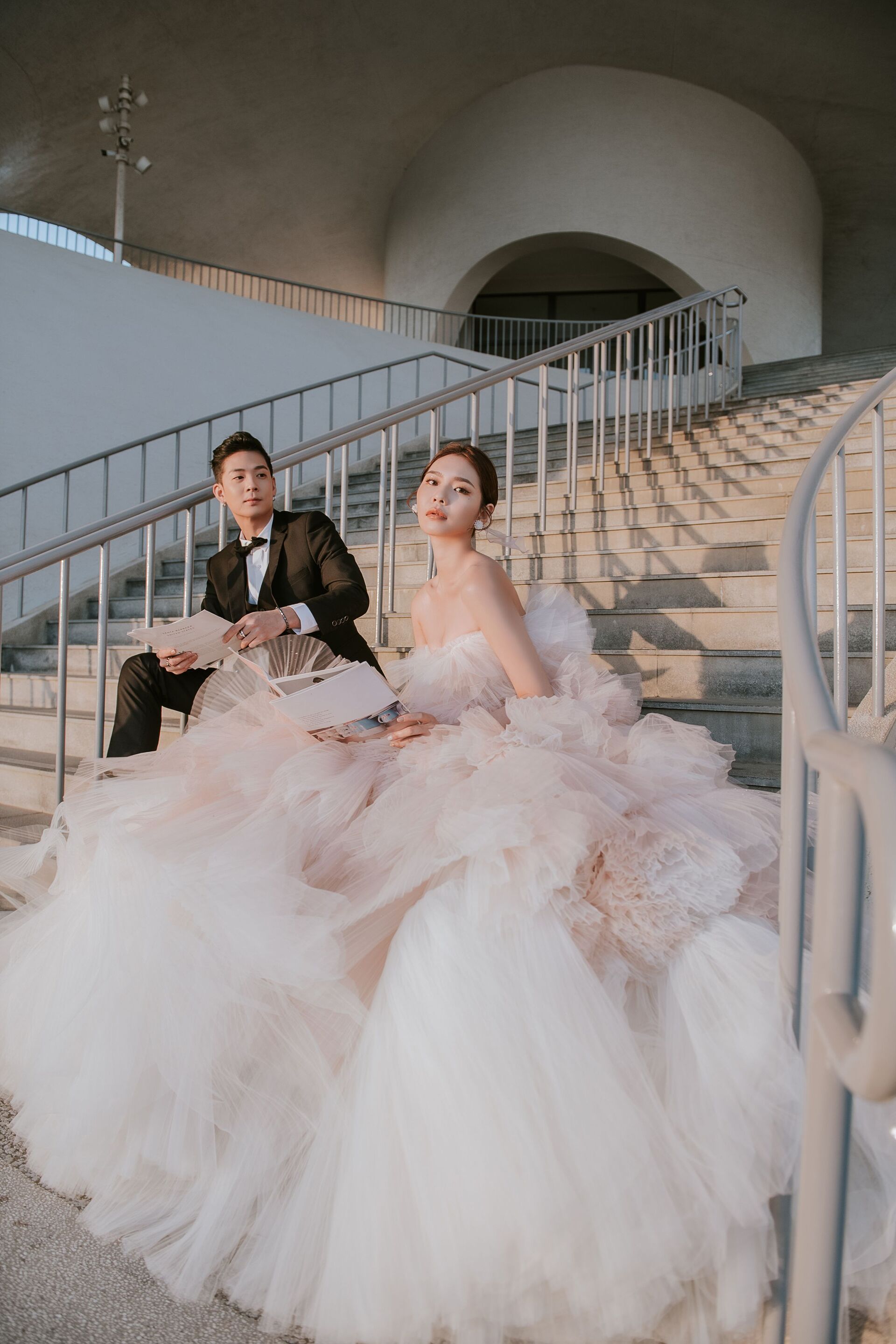 姿態俐落、眼神帶著一點距離感與自信,在鏡頭前自然展現態度與個性,像是從時尚大片裡走出來的明星!特別適合偏愛時尚氛圍、勇於表現自我風格的新娘。